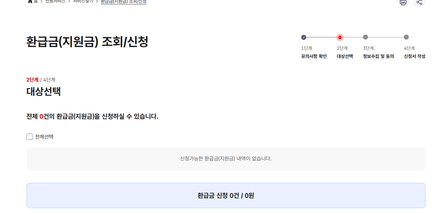 ※ 환급금 관련 계좌를 이전에 등록해둔 적 있는 경우 대부분 자동지급 대상