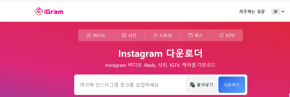 그중 igram은 릴스 호환성이 좋고, 스토리 역시 공개 계정인 경우 다운로드 가능합니다.
