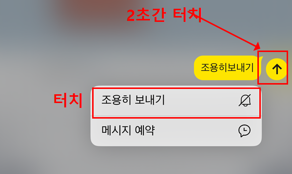 조용히 보내기는 반드시 길게 누르기 해야 합니다.