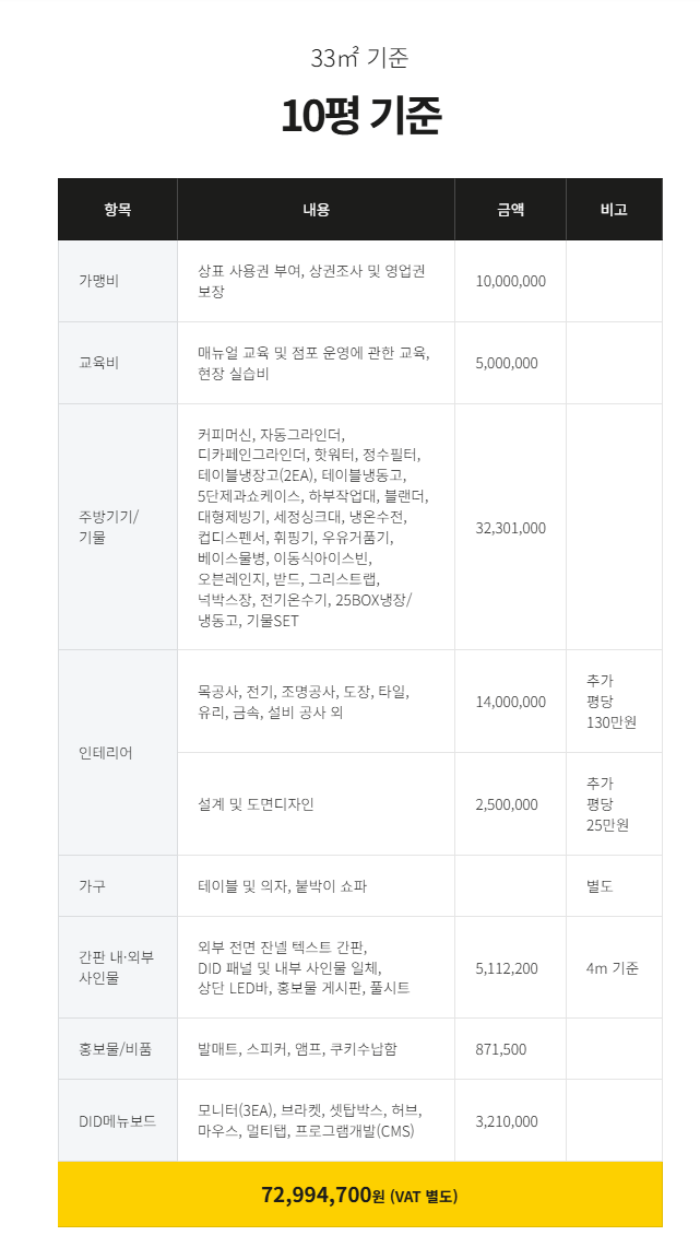 - 창업 비용: 10평 약 1억 7천만 원, 15평 약 2억 원 (보증금 포함)