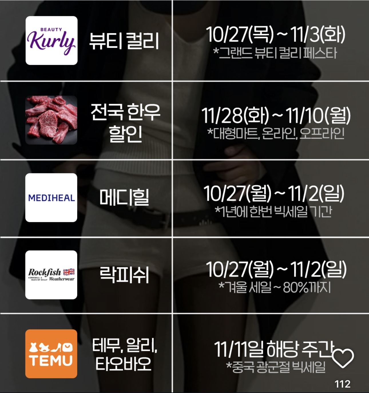 | 얼리딜 시작 | 11월 초부터 일부 브랜드 조기 세일 |