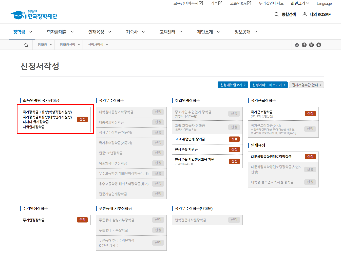 ① 한국장학재단 홈페이지/모바일 앱 접속